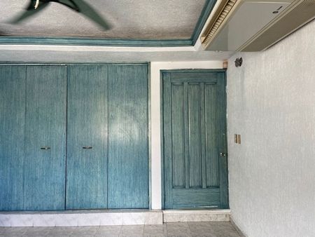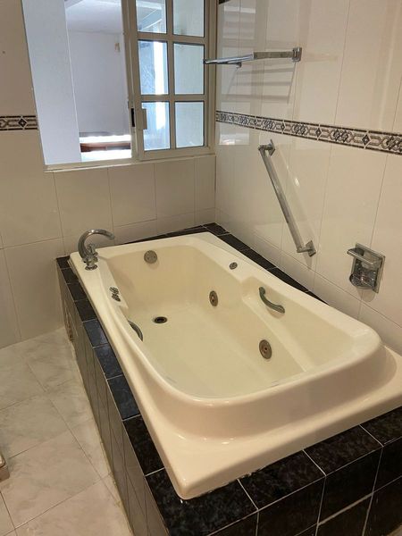 Recamara principal con clima de 1 tonelada, closet sin puertas y baño completo con tina