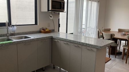 P.B. SALA COMEDOR, COCINA INTEGRAL, AREA DE LAVADO, PUERTA LATERAL DE SERVICIO, PEQUEÑO JARDIN Y PATIO TRASERO; P.A. ESTUDIO O AREA DE T.V. ; 3 RECAMARAS LA PRINCIPAL CON BAÑO Y VESTIDOR, SECUNDARIAS CON CLOSET Y COMPARTEN BAÑO, EN FRACCIONAMIENTO PRIVADO CON ALBERCA Y SALON DE USOS MULTIPLES.