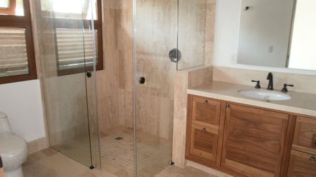 Cuarto con baño completo para guardias de seguridad y una bodega.