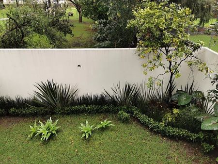 Entrada de garaje, recibidor, baño de visitas, salón de usos múltiples con baño completo, cuarto de servicio con baño completo, cuarto de lavado y planchado.