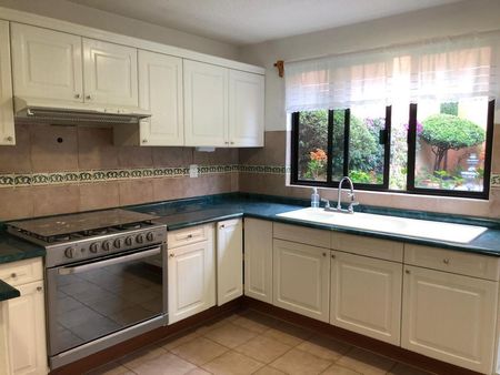 Hermosa casa en venta con doble seguridad dentro de una privada, acogedora estilo mexicano, acogedora, agradables espacios, 3 recamaras la principal con baño, 2 baños completos, estudio, sala comedor con acceso al jardín de 100m2 , baño de visitas, cocina, despensa, cuarto de lavado, sala de TV o family, 2.5 bodegas, estacionamiento para 3 autos, jardín común muy cerca de la casa dentro de la privada. Doble seguridad acceso a la colonia y acceso a la privada.