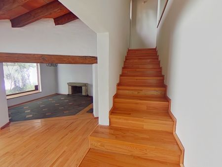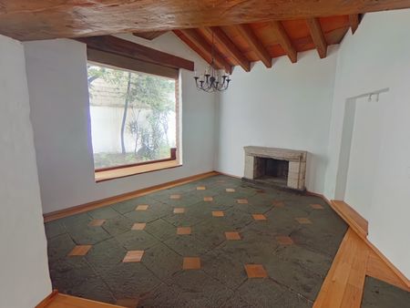 Linda casa en dos niveles, amplios espacios, estancia con chimenea y cava de vinos, cocina integral con alacenas, dos patios y jardín interior. Segundo nivel 3 recámaras con baños y clóset. La recámara cuenta con balcón y espacio para una sala de estar, área para juegos o sala de tv.