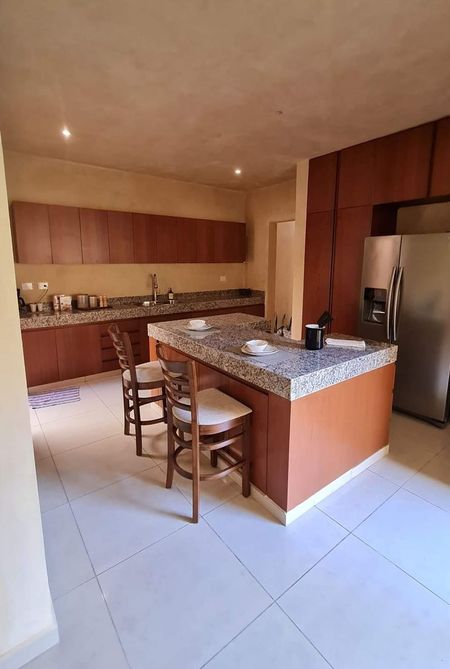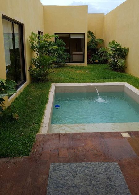 • 3 recámaras con baño independiente cada una, la recámara principal con baño vestidor. Terreno: 360 m2 Dimensiones: 12 metros de frente 30 metros de fondo jardinera e iluminación de tragaluces • Sala/comedor propio Construcción: 226 m2 • Terraza techada • 1/2 baño de visitas • Amplia cocina con isla • Garage techado para 2 coches • Cuarto de servicio/den con baño • Alberca de 3 x 4.50 • Pasillo distribuidor con área para