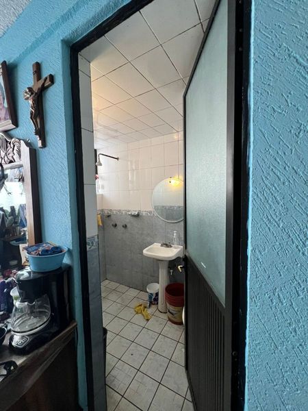 En planta baja cuenta con espacio para 3 autos, entrada peatonal y segunda entrada independiente para 2 departamentos, cocina muy amplia, comedor con gran espacio, sala, vestíbulo, una habitación para oficina o estudio de muy buen tamaño y medio baño.
