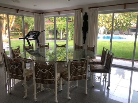 Con arboles frutales, alberca de 11 x 5 m, salón de fiestas, 3 bungalos independientes y suite completamente amueblados, casa principal con 5 recámaras, 4 baños, sala comedor, cocina, etc.
