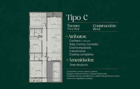 Un nivel/Modelo de 3 recámaras/Tipo C