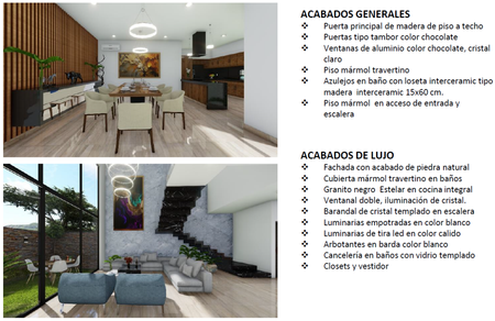- Hermosos espacios en Estancia, Comedor, Cocina, Terraza y Áreas verdes.