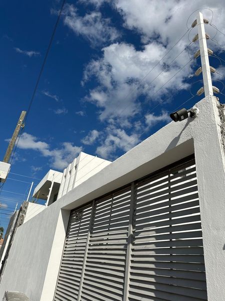 Sala, comedor y cocina vestida con alacena y acceso a patio y pasillo de servicio, en esquina con acceso y salida a las dos calles, terraza semi techada , cochera para 2 autos con portón eléctrico, cerca eléctrica con alarma y cámaras de vigilancia, cisterna con bomba sumergible silenciosa, bomba hidroneumatica con tanque, calentador eléctrico con temporizador ,cuarto de lavado bodega y videoportero con dos pantallas , wifi con repetidor en planta alta , tanque estacionario