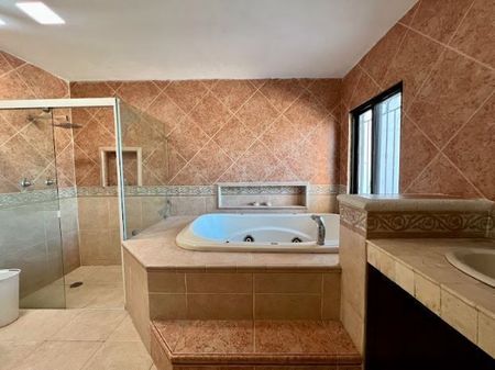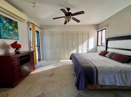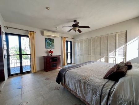Recámara principal con amplio clóset de pared, dos balcones y un baño completo con jacuzzi equipado
