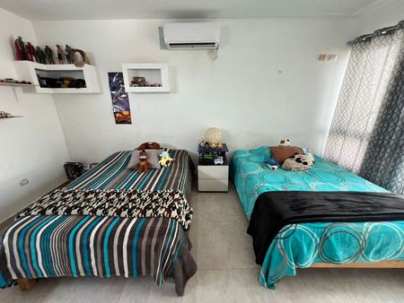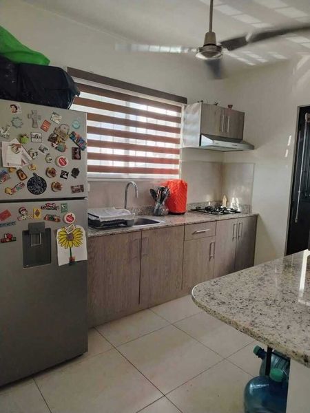 Cocina con gavetas, estufa a gas de 4 quemadores y campana, cuarto de lavado techado con instalación eléctrica, pasillo de servicio, jardín, garage con portón, 3 aires condicionados inverter, ventiladores de techo, calentador de paso, bardas perimetrales propias.