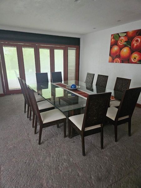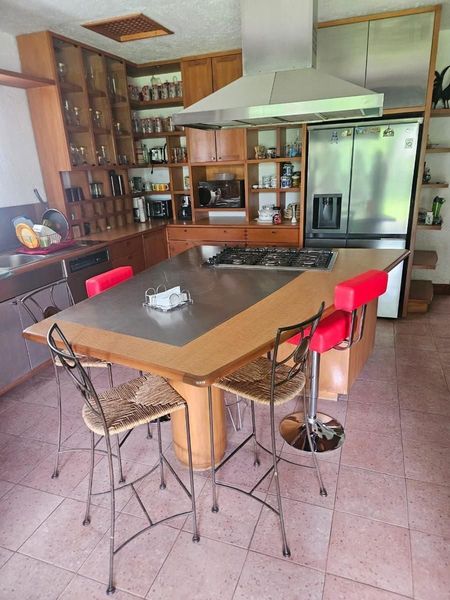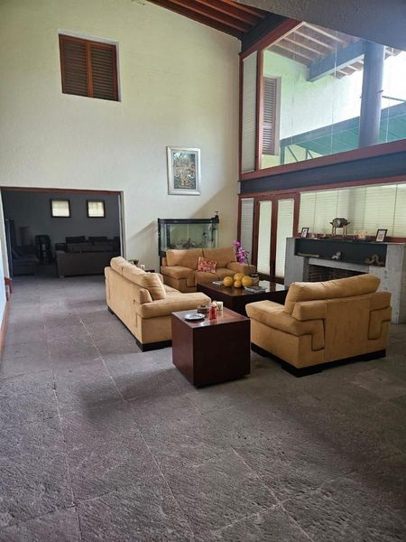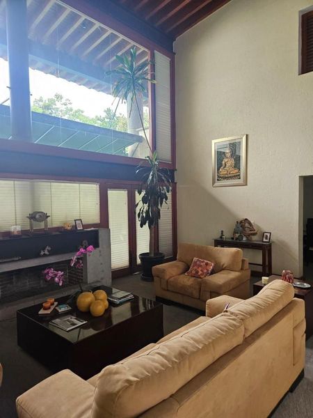 Sala con doble altura lo que le da amplitud y una excelente iluminación natural, la sala integra el área social con una hermosa vista, comedor con acceso a la terraza, antecomedor, cocina equipada con isla, parrilla y campana. Amolio family room, medio baño para el servicio de las visitas, alberca y amplio jardín con bellos árboles maduros y frutales.
