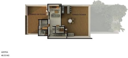 NIVEL 3: Cuarto de Juegos, terraza techada trasera y terraza frontal, cuarto de servicio.