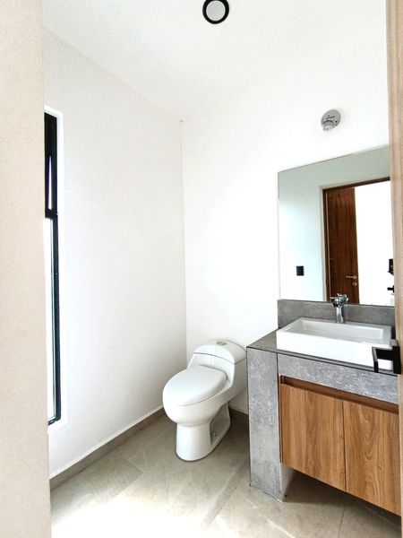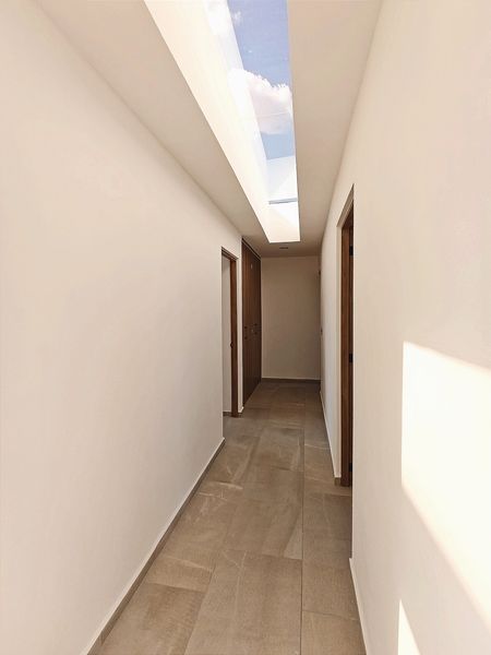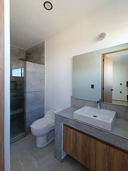 Equipada con canceles de baño, barandal, espejos y gabinetes de baño. Se tiene la opción de un roof garden con un costo adicional. Cisterna de 4000lts, hidroneumatico.