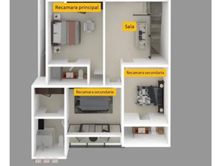 Planta . Alta : Estancia, 3 recamaras cada una con baño vestidor, terraza.