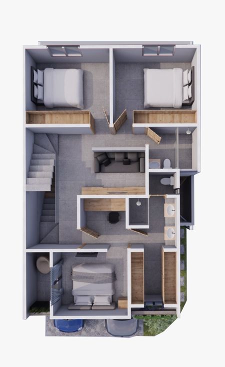 -3 recámaras la principal con baño y walking clóset, recamáras secundarias con clóset y comparten baño.