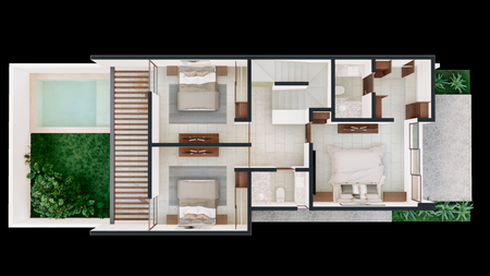 Modelo Madera, Piedra y Cristal, de 2 pisos.