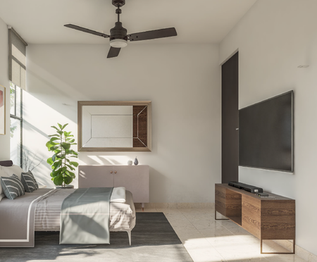 Recámara principal con clóset vestidor y baño