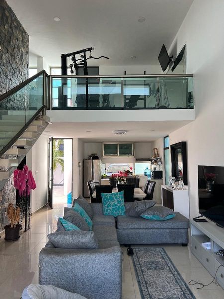 CASA RESIDENCIAL EN VENTA EN PROGRESO YUCATAN Casa en venta en Progreso Yucatán, con una excelente ubicación para disfrutar una calidad de vida como te la mereces, se encuentra a 200 metros de la playa, alrededor se encuentran desarrollos importantes como Yucalpeten Resort Marina, un complejo de departamentos exclusivos de lujo, próximamente centro comercial, se ubica la Av Yucalpeten (antes Av Libano), una de las avenidas mas importantes de Puerto Progreso, cuenta también con gasolinera cerca, oxxo, caseta de seguridad publica, restaurantes, clubs de playa. El interior de la casa cuenta con espacios amplios, sala con techo de doble altura, pisos de porcelanato, escalera con baranda de cristal y aluminio, 2 recamaras con vistas al patio, 1 recamara con vista a la entrada, cocina con ventanal hacia la entrada y con puerta al pasillo, sala de estar con baranda de cristal y aluminio. Superficie. Terreno: 350 m2 (10 m por 35 m) Construcción: 247.70 m2 CARACTERISTICAS: PLANTA BAJA: Recibidor Comedor Cocina Medio baño Recamara principal con closet vestidor y baño Balcón con acceso a la piscina Piscina de 7 m x 3 m Baño completo junto a la piscina Estacionamiento para 5 autos Bomba de agua Cisterna Portón eléctrico área de lavado Meseta exterior con lavabo PLANTA ALTA: 2 recamaras 1 baño compartido Sala de estar (Gimnasio) Precio: $6,500,000 ------Precio por debajo de su valor comercial------ Precio sujeto a cambio sin previo aviso Pago con recursos propios.