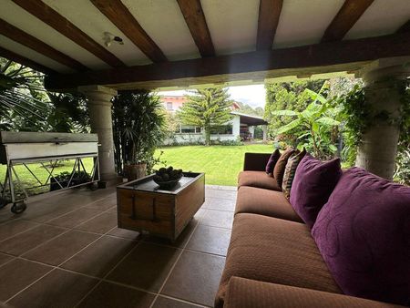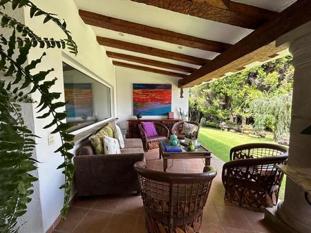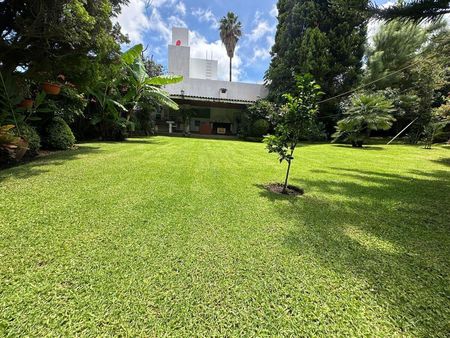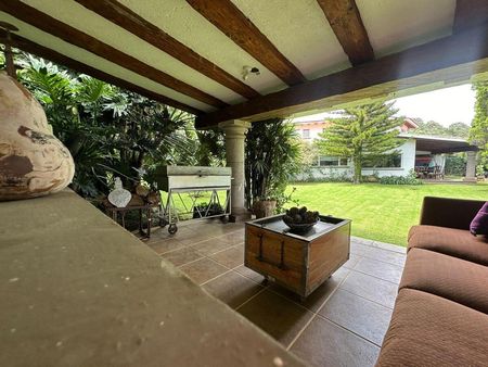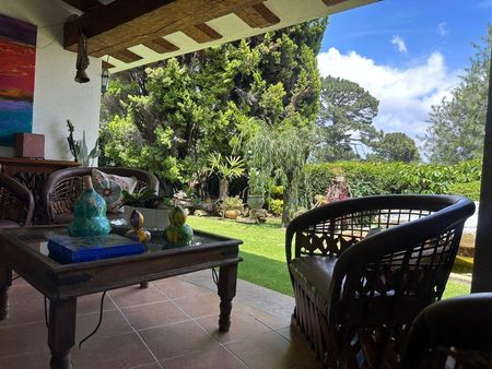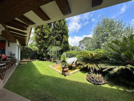 Además, cuenta con un bungalow y dos terrazas, una de ellas con acceso al comedor y vista a la fuente, y otra con vista al jardín, equipada con mesa de tepankaki y horno para pan. El hermoso jardín dispone de un sistema de riego por aspersión. Además de contar con un vivero equipado con hidroponia.