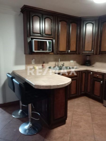 La propiedad es de dos niveles, cuenta con 3 recámaras la principal con baño propio y jacuzzi, asi como con walking closet, las otras 2 recámaras con closet cada una y 1 baño compartido, amplio espacio para sala y comedor, cuenta con cocina integral equipada con estufa, refrigerador y microondas.