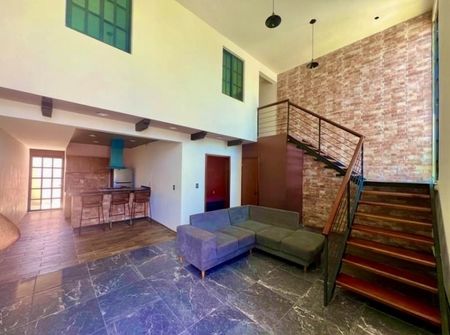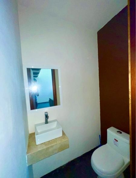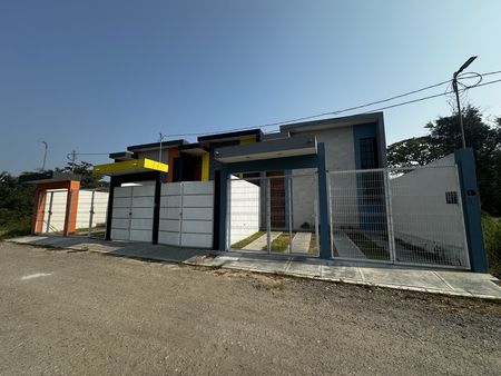 Planta baja: Cochera 2 autos sin techar, sala, comedor a doble altura, cocina, 1 recamara con baño, patio de servicio.
