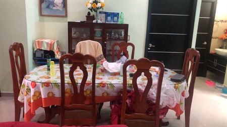 Cochera, Sala, comedor, cocina, 3 recamaras, 2 baños, cochera 2 autos.