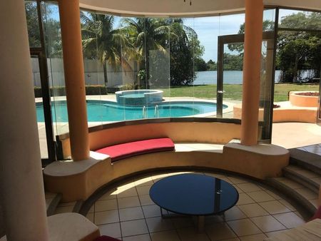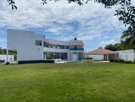 3 recamaras con minisplits y baño propio, sala, comedor, climatizado, cocina estufa, refrigerador, barra, alberca, palapa con baños. Amplios jardines, estacionamiento para 6 autos