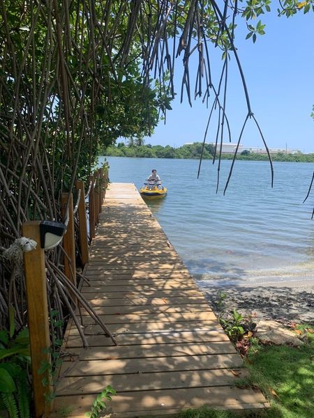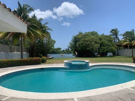 Vista a la Laguna, cuenta con muelle, con arena para bañarse.