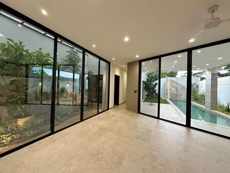 Estrena casa de un piso en la zona Country en la ciudad de Mérida, Yucatán. En la privada Mirador; cuenta con vigilancia 24/7, Salón de eventos, juegos infantiles, gimnasio, cancha de pádel y a tan solo 2 minutos de la carretera Mérida-Progreso.