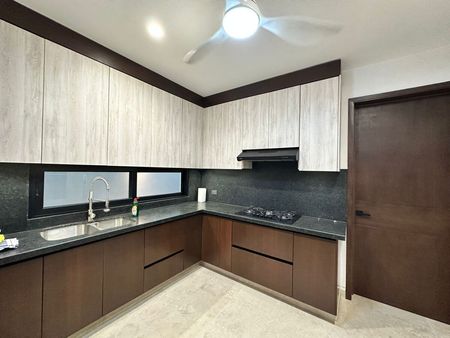 *Cocina equipada y vestida con: Refrigerador doble puerta, microondas, horno, doble tarja, parrila de gas con campana.
