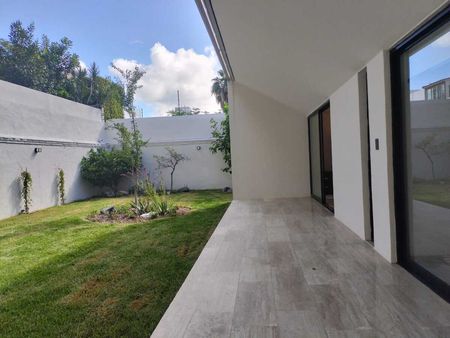 Cuenta con 1 nivel, recámara principal con baño y vestidor, 2 recámaras secundarias con closet cada una y baño compartido, cocina abierta, área de lavado, jardín interno y trasero, terraza, estudio y estacionamiento com portón eléctrico para 4 autos.