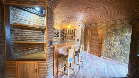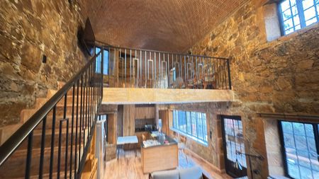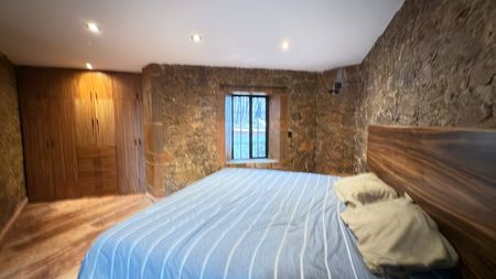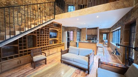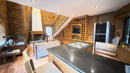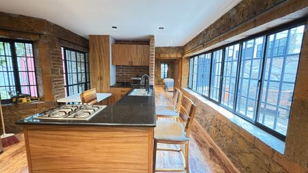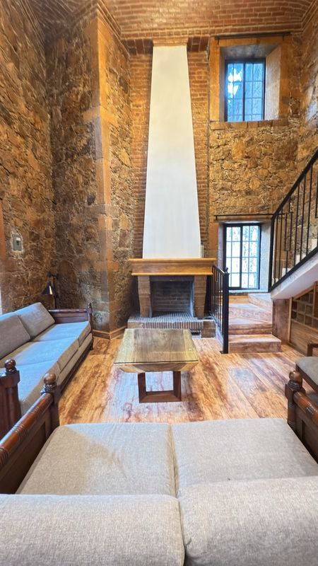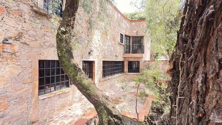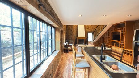 Hermosa casa en renta con un estilo rústico contemporáneo, rodeada de acabados en piedra, madera y elementos de hierro forjado que le brindan un carácter único.