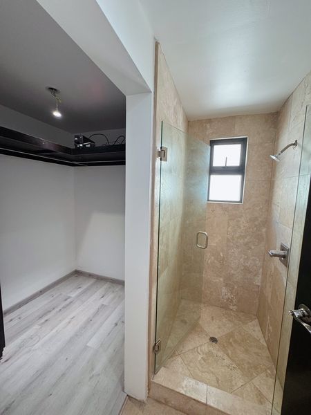 Tres recámaras, cada una con walk-in closet y baño completo.