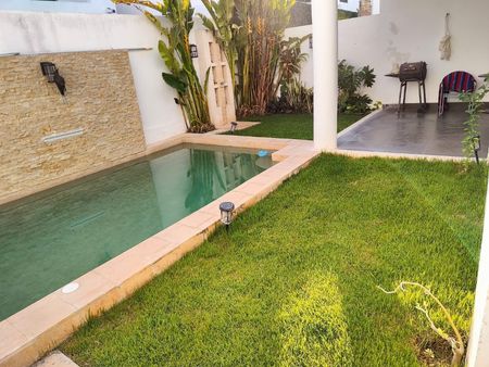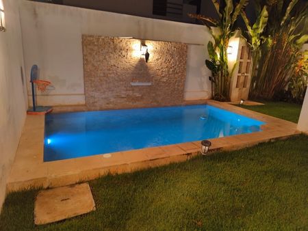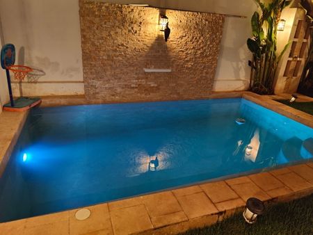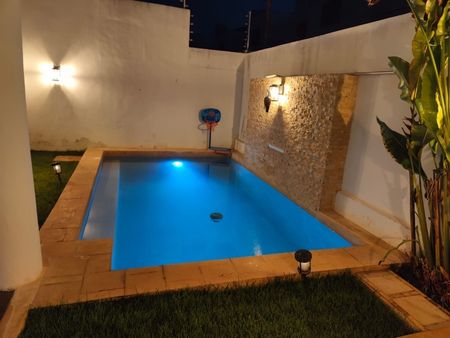 Piscina, regadera, jardín