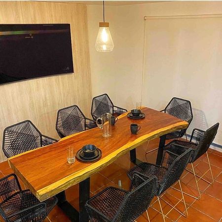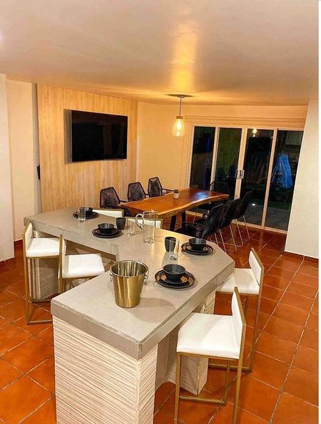 - Comedor / Estancia con smart TV 65” con izzi, Netflix , Prime video, y TV 42” para conectar consola de videojuegos
