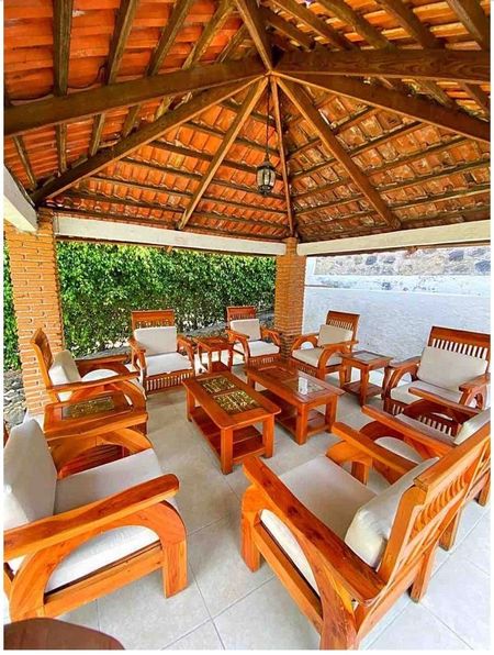 - Mesa alta en exterior con periqueras de parota y herreria con 10 bancos