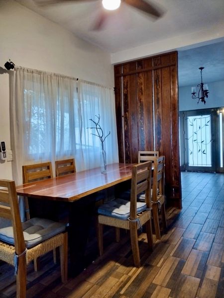 Cuenta con: Sala, comedor, cocina, 2 baños, patio de servicio, cochera techada, portón, clima, amplio patio trasero.