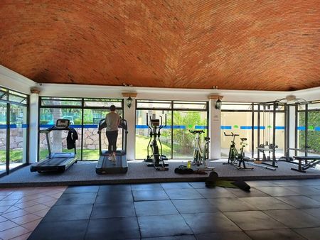 La privada cuenta con vigilancia 24/7, y amenidades como alberca,, terraza, baños, gimnasio equipado, salón para clases, cancha de tenis, cancha de usos múltiples, gran jardín con tumbling.