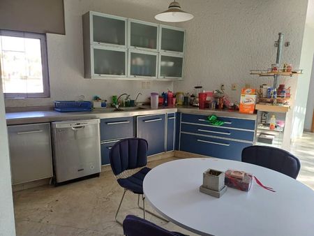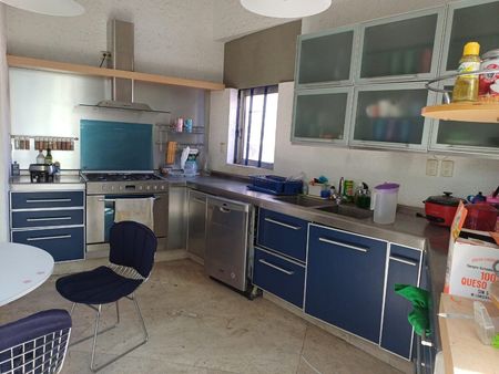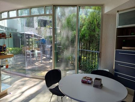 La casa cuenta en planta baja con sala-comedor con piso de duela, doble altura, medio baño, cocina con antecomedor, gran despensa, lavavajillas, área de lavado, cuarto de servicio con baño. Gran recámara principal con baño, duela, salita, terraza. Terraza con vista al jardín comun.