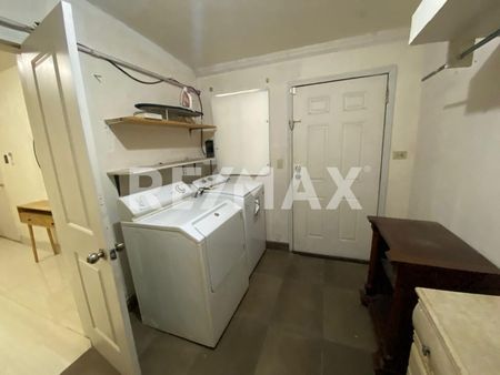 cuarto de lavar amplio con lavadora y secadora, plancha y raca para colgar ropa,