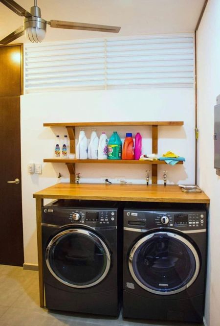 * Cuarto de lavado con lavadora y secadora con medio baño