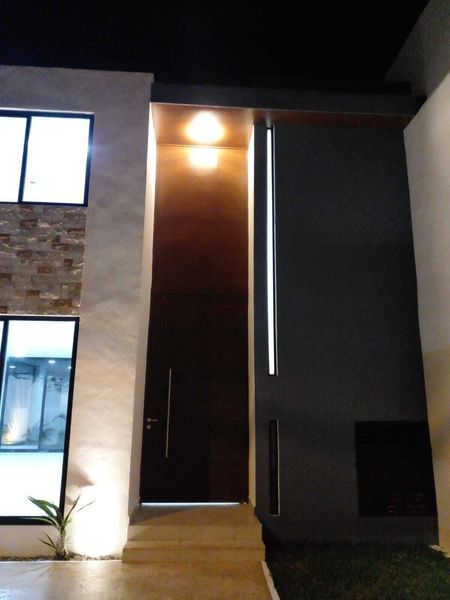 -Entrada principal de doble altura con puerta de madera tzalam (1.6 x 5.8 m).