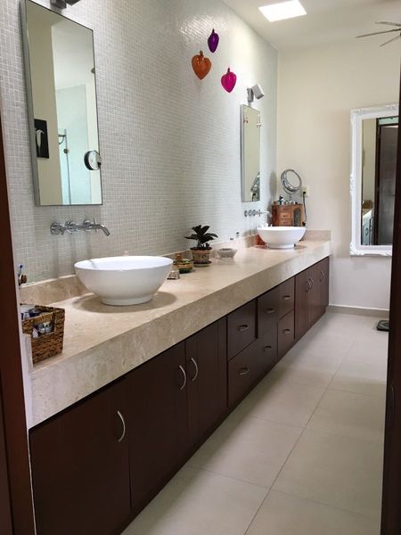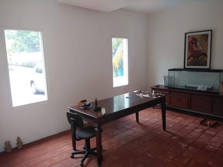 Recibidor, estudio, sala comedor, baño completo para visitas, cocina integral con hermosa vista a la terraza, jardines y alberca, alacena, bodega, cuarto de lavado, cuarto de servicio con baño. Estacionamiento para 4 autos sin techar.