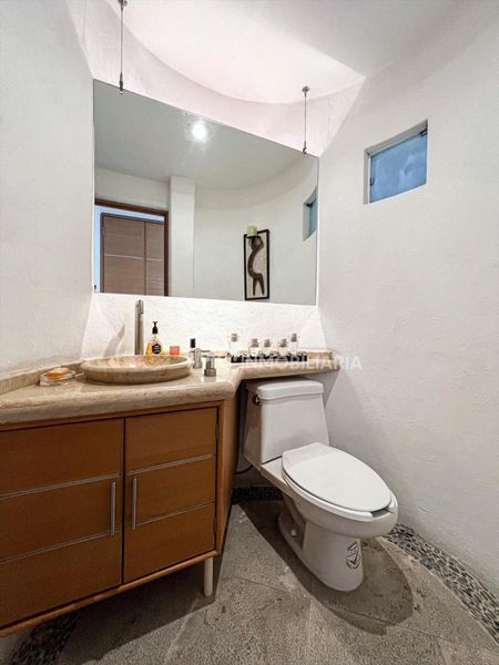 Área de sala, comedor, estudio, medio baño para visitas, cocina equipada, alacena, cuarto de lavado, cuarto de servicio con baño completo, patio de servicio, jardín de 100 m2.