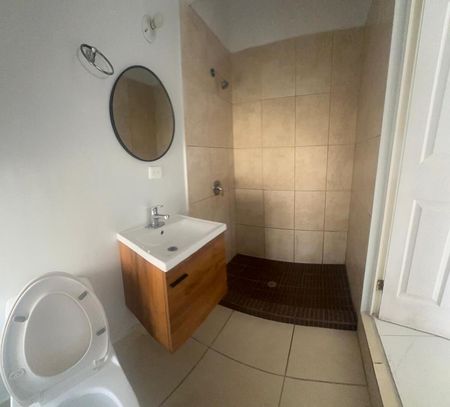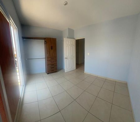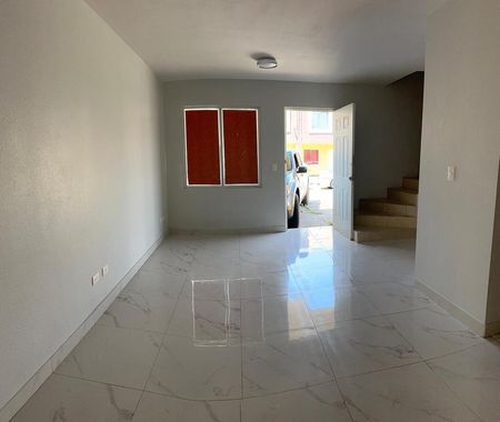 Casa construida en dos niveles con terreno excedente a un costado , estacionamiento para tres vehículos , amplia área de sala_comedor, cocina integral , alacena , baño completo en primer nivel y patio posterior amplio .