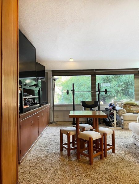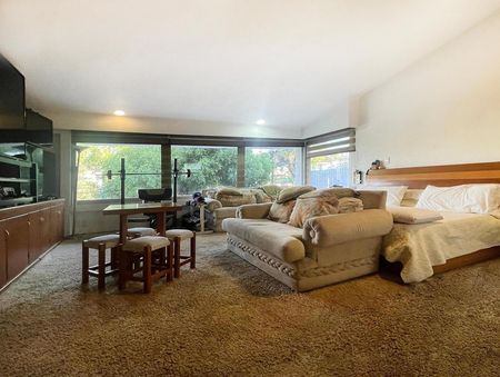 Construcción de 2 niveles al fondo del jardín, ideal como casa de reuniones, equipada con bar, baño y amplia estancia en el segundo piso (también apta para casa de huéspedes, gimnasio u oficina).
