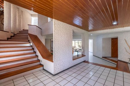 Amplias escaleras de madera con doble altura permiten acceder a la planta alta con el área social principal conformada por una sala con chimenea, comedor, bar, jardines interiores, terraza con vista al jardín de la entrada y baño de visitas.