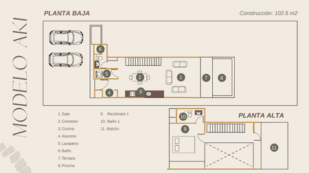 Casas tipo loft de 128 m2 con comedor a doble altura, 1 Y 2 recámaras y 2 baños completos, cuarto de lavado y piscina. Acabados en chukúm y concreto pulido.