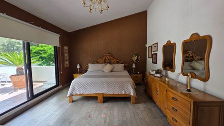 En planta baja: 2 recámaras, cada una con baño completo (una con vestidor y otra con clóset), ambas con acceso directo al jardín