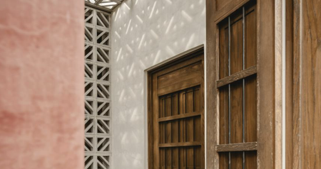 Más de 1,000 celosías talladas con precisión definen la identidad de la casa. Cada celosía filtra la luz y crea un juego de sombras que cambia a lo largo del día—una coreografía visual donde la arquitectura conversa con el sol.